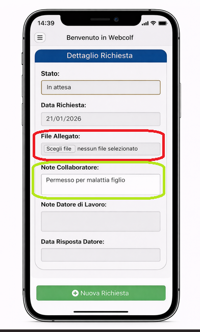 Il collaboratore dovrà quindi posizionarsi sul tab verde 'Richiesta permessi'.