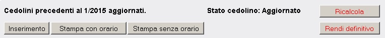 Se il programma visualizza la voce "cedolini precedenti aggiornati" e “Stato cedolino aggiornato” significa che la situazione è aggiornata e corretta e quindi si può stampare il cedolino cliccando nella seconda riga stampa (con o senza indicazione dell'orario sottostante).
